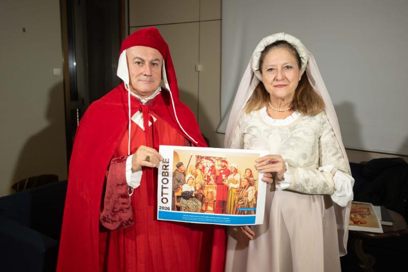 Il calendario - che verrà regalato con La Nazione a tutti lettori mercoledì 24 dicembre - è stato presentato ufficialmente nella sede del quotidiano con i rappresentanti delle associazioni che hanno preso parte all'iniziativa, tra queste anche il Corteo Storico Castel Sant'Angelo di Pontassieve, con uno scatto selezionato dal suo calendario 2026.