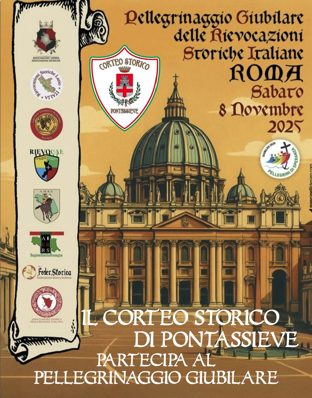 Il Corteo Storico Castel Sant’Angelo di Pontassieve parteciperà sabato 8 novembre al Pellegrinaggio Giubilare delle Rievocazioni Storiche Italiane a Roma, nell’ambito del Giubileo 2025.