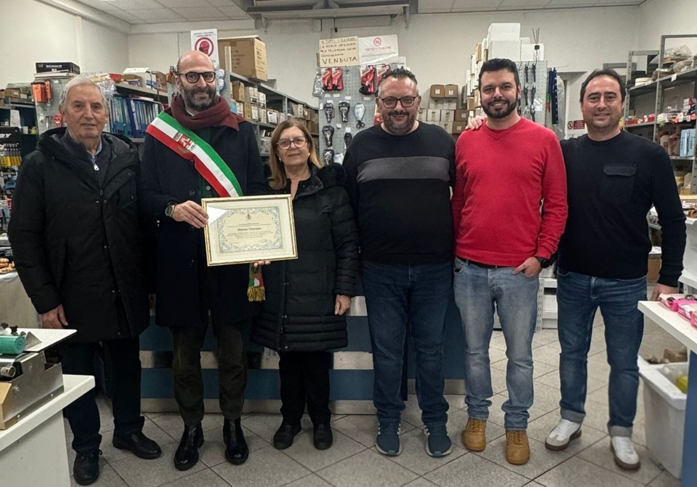 Consegnate due targhe di riconoscimento a storiche attività del territorio: il negozio di macchine da cucire di Giuseppe Matese, per i suoi 50 anni di attività, e l’Autocarrozzeria Piccioli, che celebra 60 anni di lavoro e tradizione, alla presenza del Sindaco Carlo Boni e dell’Assessore alle Attività Produttive Mattia Canestri