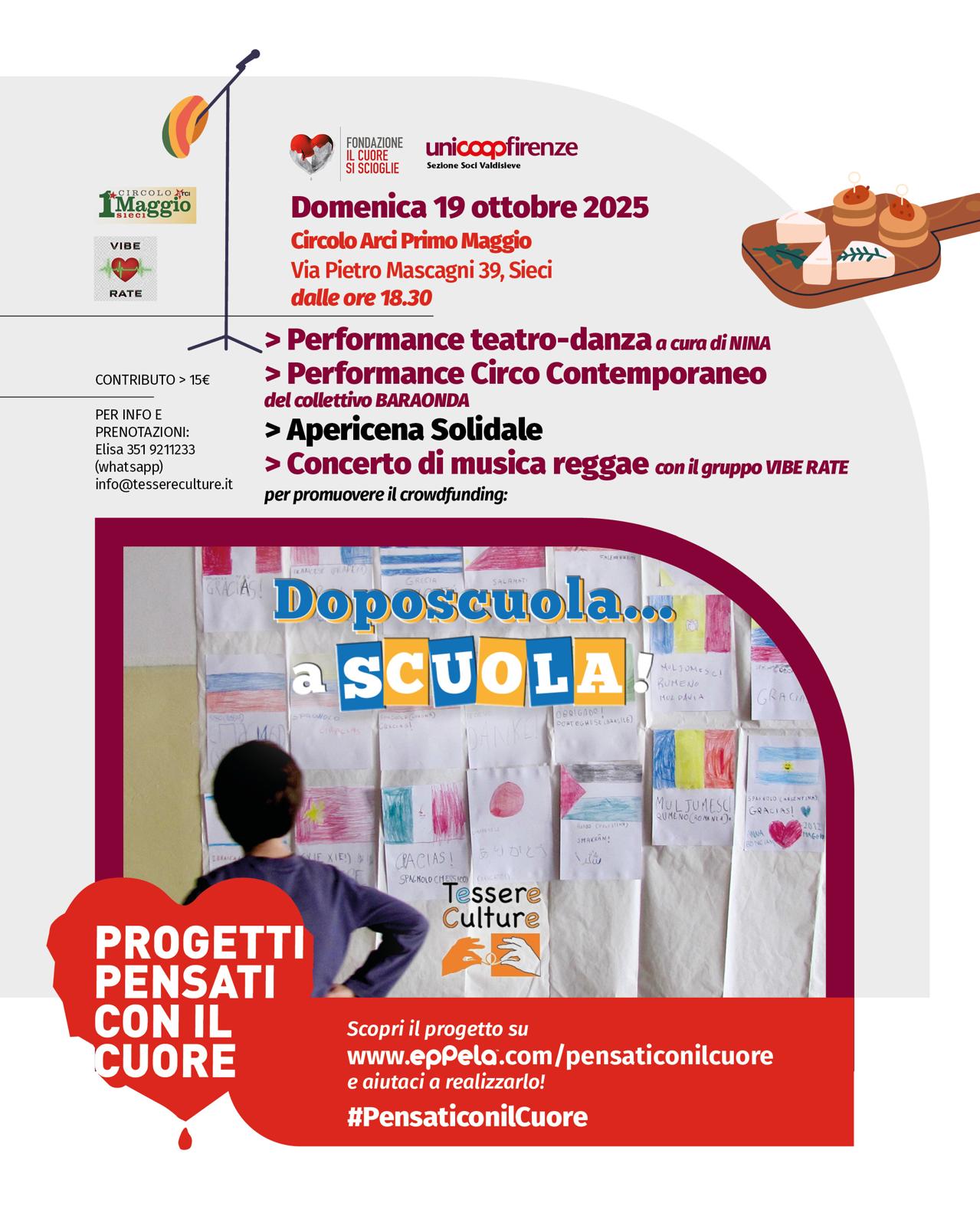 Dopo il successo del pranzo solidale del 5 ottobre, che ha raccolto 2.000 euro, l’associazione Tessere Culture, in collaborazione con la sezione soci Coop Valdisieve e la Fondazione Il Cuore si scioglie, rilancia il progetto “Doposcuola a scuola” con un nuovo appuntamento aperto a tutta la comunità.