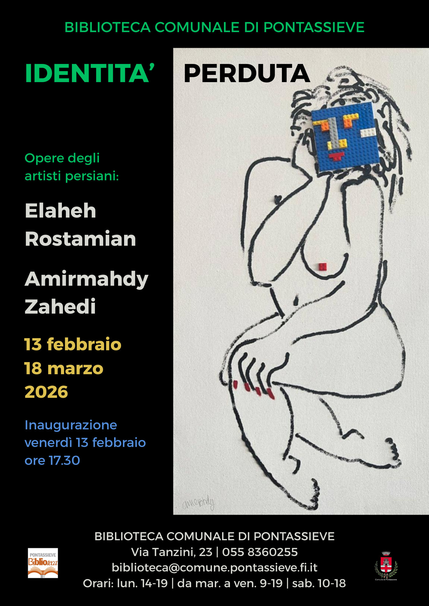 Dal 13 febbraio al 18 marzo 2026 la Biblioteca Comunale di Pontassieve ospita la mostra d’arte contemporanea “Identità perduta”, con le opere degli artisti iraniani Elaheh Rostamian e Amirmahdy Zahedi.