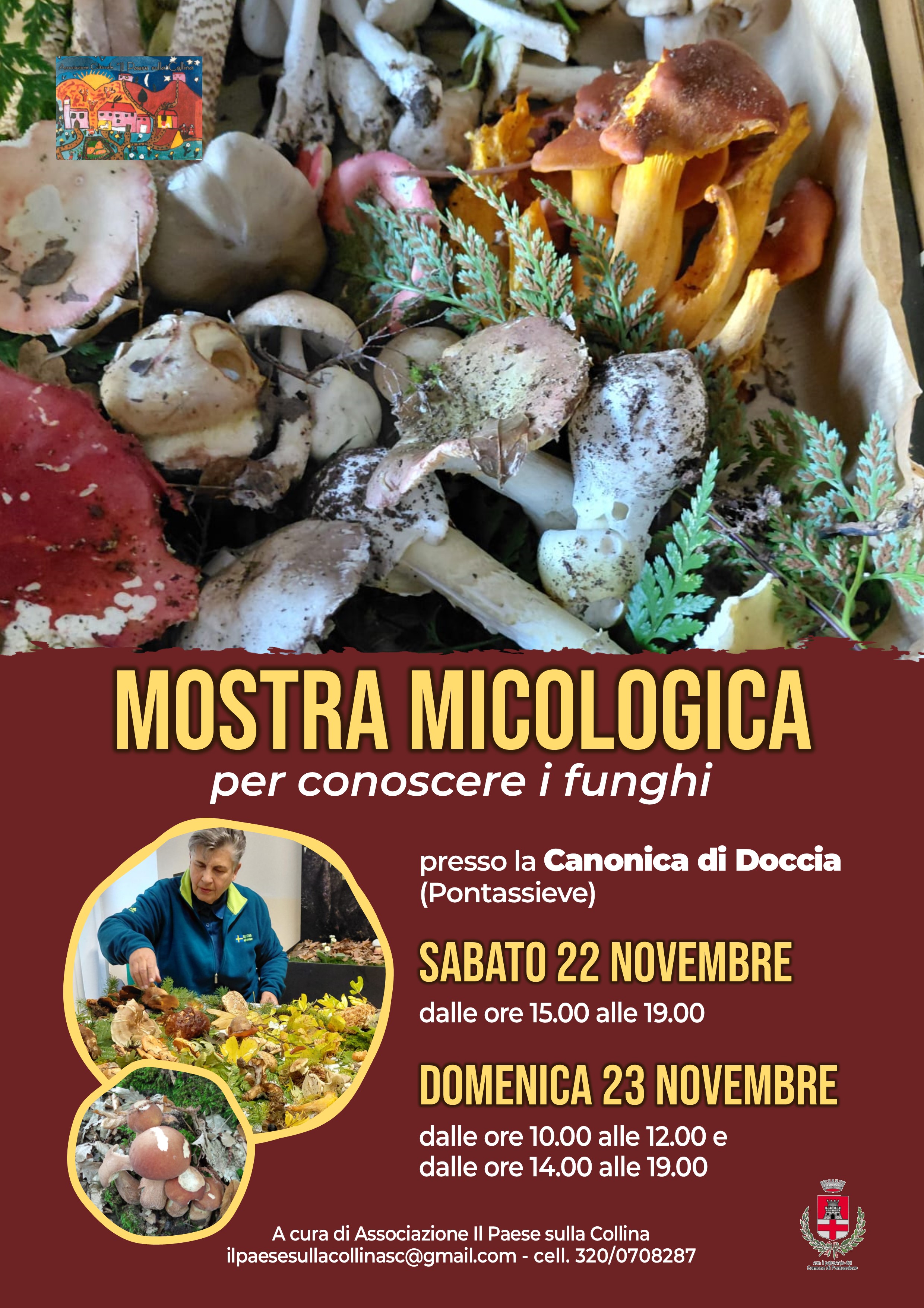 L'Associazione culturale il paese sulla collina Sara Cerrini organizza un appuntamento per tutti gli amanti della natura e della micologia la "Mostra Micologica per conoscere i funghi". sabato 22 e domenica 23 novembre, nella Canonica di Doccia a Pontassieve.