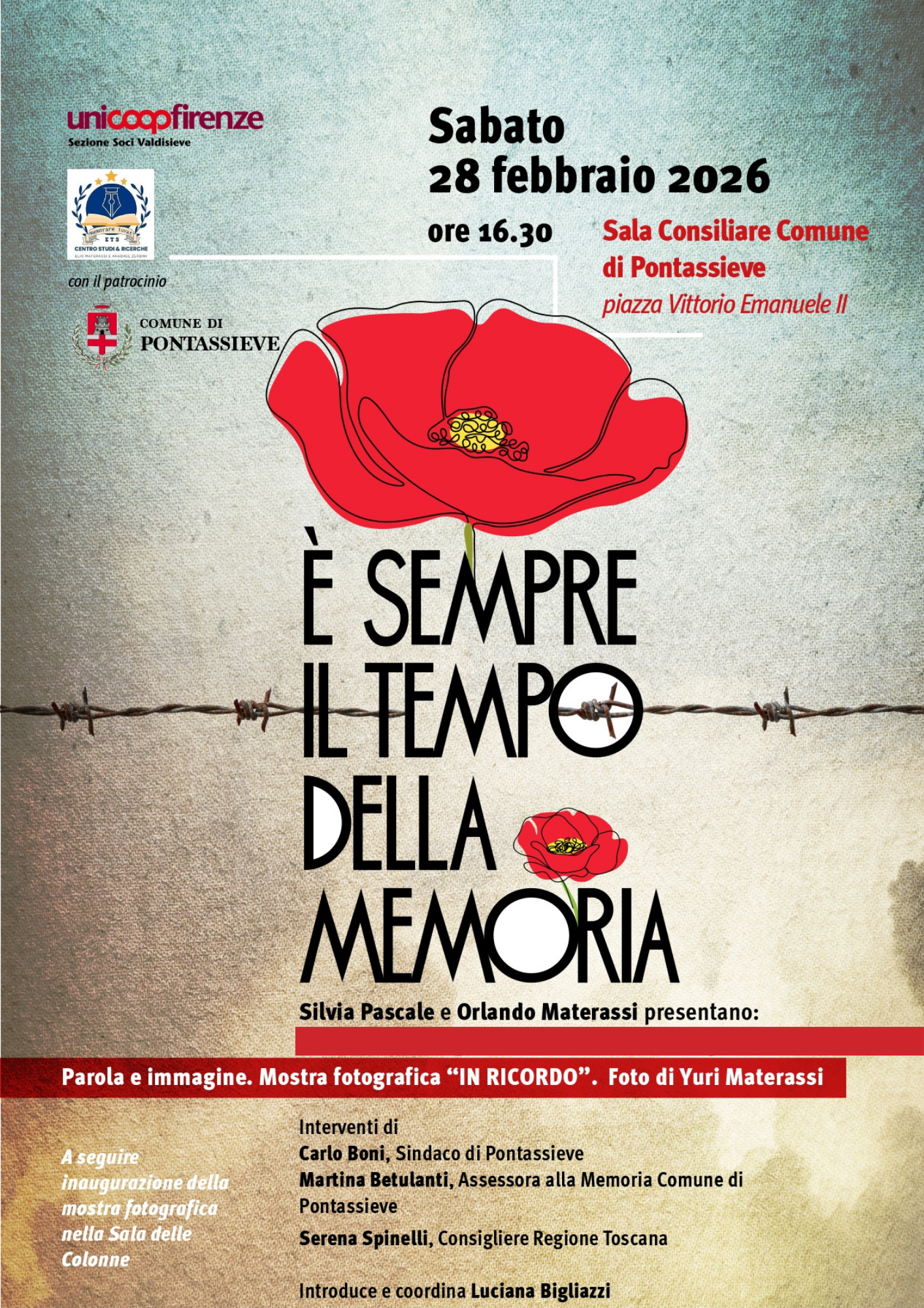 Sabato 28 febbraio 2026, alle ore 16:30, la Sala Consiliare del Comune di Pontassieve, ospita la presentazione del libro catalogo “Parola e Immagine” di Silvia Pascale e Orlando Materassi. L'evento inaugurerà ufficialmente la mostra fotografica “In Ricordo”, realizzata da Yuri Materassi e dedicata alla memoria degli Internati Militari Italiani (IMI) nei campi di concentramento nazisti, che sarà ospitata in Sala delle Colonne.